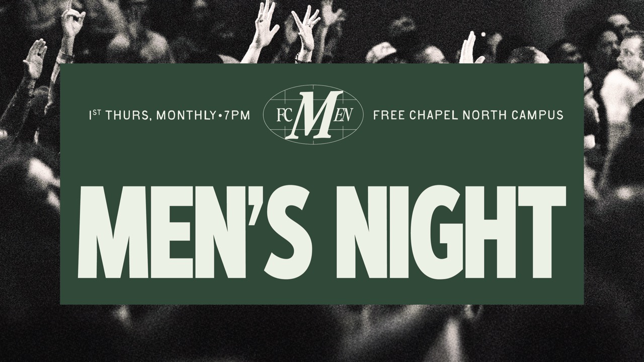 Join us monthly on the 1st Thursday for our Men's Gathering at 7 PM at Free Chapel North Campus. Doors open at 6:30pm. Food and table talks following the service.