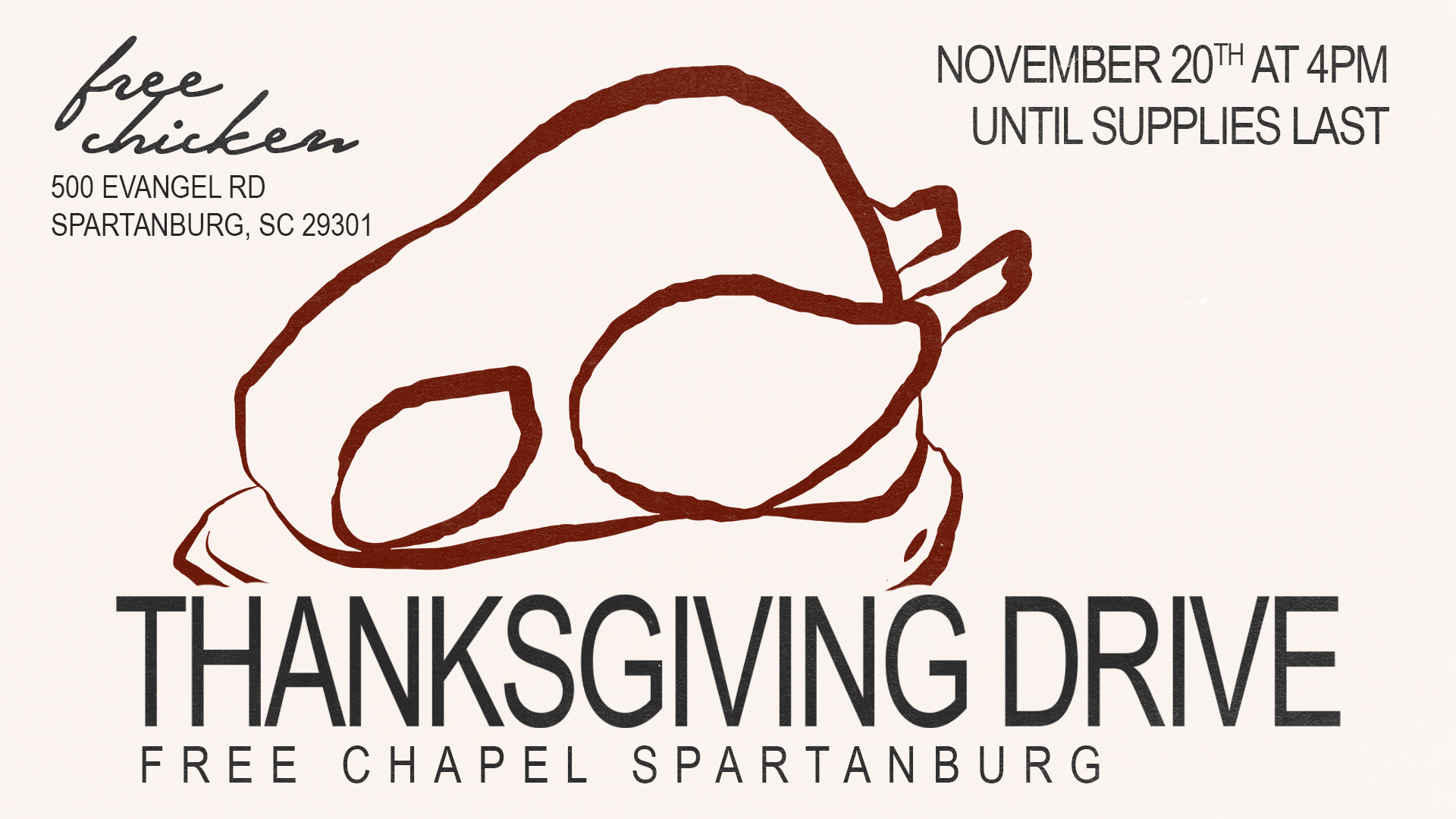 We love our community, and we want to be a blessing this holiday season! Join us on Thursday, November 20th, at 4 PM at our Spartanburg Campus for a free chicken giveaway—no registration required.